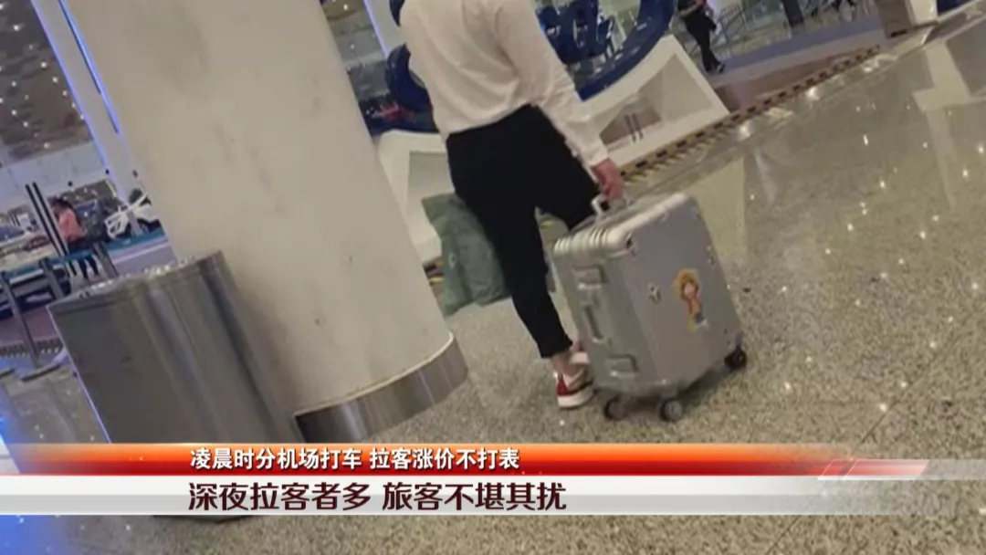 針對(duì)黃先生反映的情況,記者在晚上11點(diǎn)鐘來(lái)到機(jī)場(chǎng)實(shí)地調(diào)查。在機(jī)場(chǎng)到達(dá)大廳的出入口,記者看到兩名男子站在出口位置,詢問(wèn)出來(lái)的旅客,是否需要打車,一看到附近有機(jī)場(chǎng)安保人員出現(xiàn),兩名男子便立刻轉(zhuǎn)身離開(kāi)。