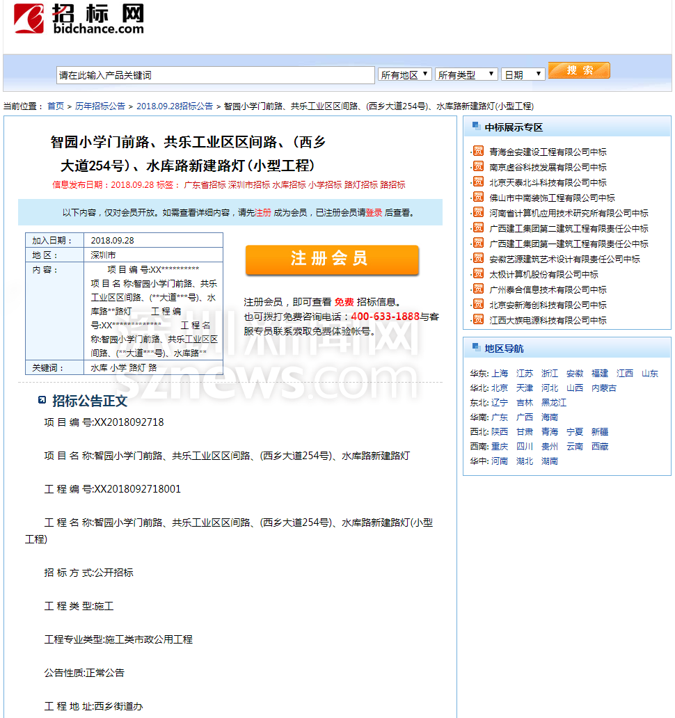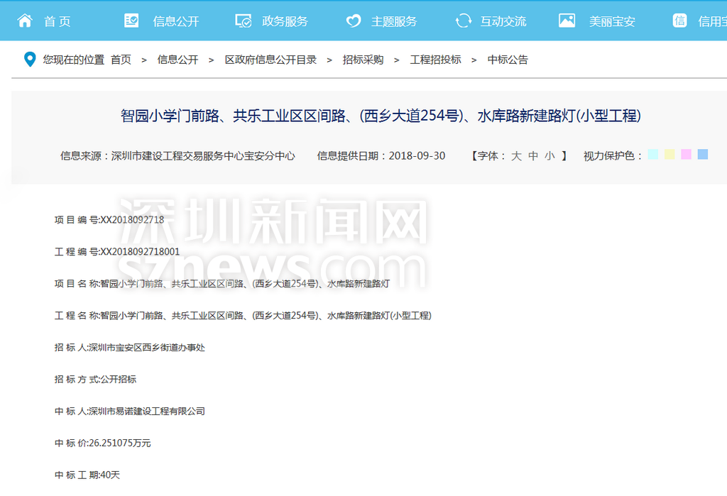 針對網(wǎng)友反映的情況,記者查閱相關(guān)資料發(fā)現(xiàn),寶安智園小學(xué)門前的施工工程于2018年9月28日公開招標。