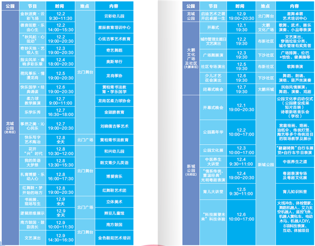 本次公園文化季由往年的公園文化節(jié)演變而來,時(shí)間由原先的一周延長為一個(gè)月。11月16日至12月16日,市、區(qū)各公園共設(shè)22個(gè)會(huì)場,組織180多項(xiàng)文藝節(jié)目在公園展演,免費(fèi)讓廣大市民欣賞。
