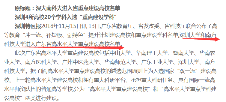 深大和南科大也入選了“重點建設(shè)高校”