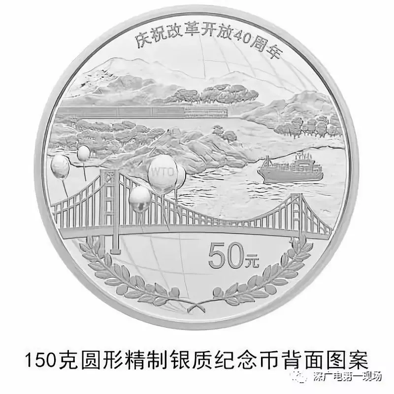 背面圖案為象征“一帶一路”的陸地、海洋、橋梁、橄欖枝等裝飾組合設(shè)計(jì),并刊“慶祝改革開放40周年”字樣及面額。