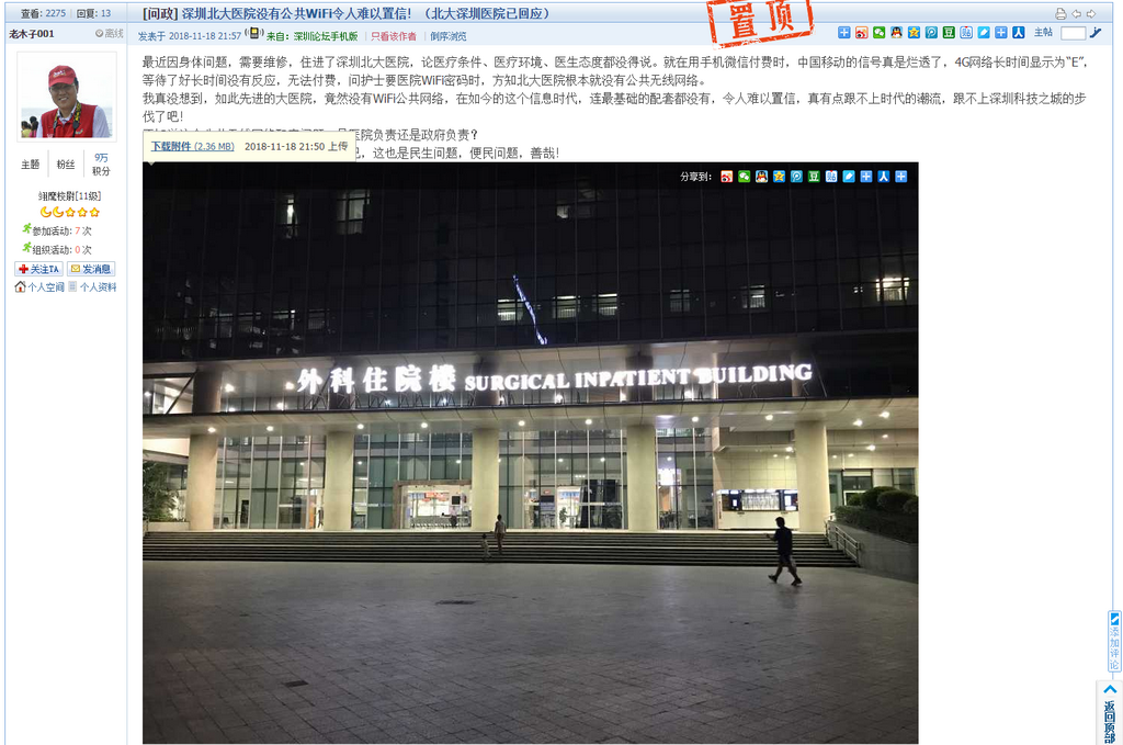 深圳新聞網(wǎng)11月20日訊(記者 劉婷)“北大深圳醫(yī)院竟然沒(méi)有公共WiFi?令人難以置信!”近日有網(wǎng)友“老木子001”在深圳論壇發(fā)帖稱(chēng),使用手機(jī)微信付費(fèi)時(shí),發(fā)現(xiàn)北大深圳醫(yī)院居然沒(méi)有公共無(wú)線網(wǎng)絡(luò)。(網(wǎng)帖地址:https://szbbs.sznews.com/thread-3821767-1-1.html)。