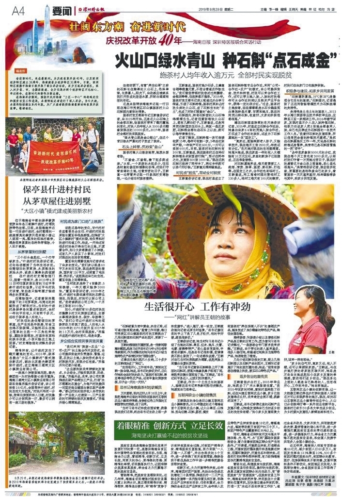 8月28日,《深圳特區(qū)報(bào)》推出了“壯闊東方潮奮進(jìn)新時(shí)代”慶祝改革開放40年——《海南日報(bào)》《深圳特區(qū)報(bào)》聯(lián)合采訪行動首期報(bào)道。首期報(bào)道通過通訊、評論等形式,以點(diǎn)帶面,展示了海南全力打贏脫貧攻堅(jiān)戰(zhàn)取得的成就。