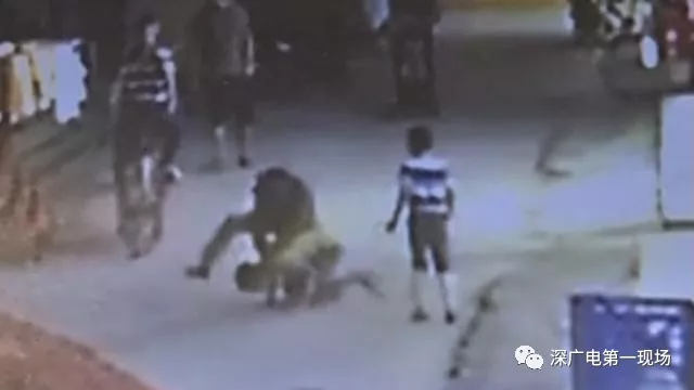 將小月按倒在地后,一名成年男子對(duì)著孩子的頭部打了五拳,看到圍觀市民越來(lái)越多,男子帶著身邊的男孩離開(kāi)。