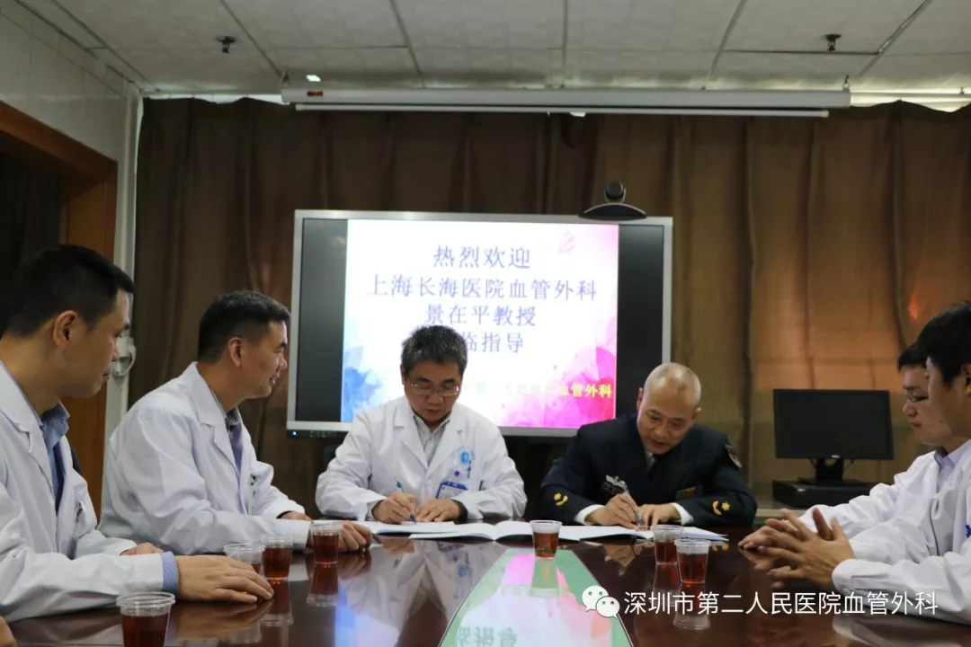 2018年11月30日,中國(guó)人民解放軍海軍軍醫(yī)大學(xué)附屬長(zhǎng)海醫(yī)院血管外科、心臟瓣膜疾病微創(chuàng)診治中心主任,上海市血管系統(tǒng)疾病臨床醫(yī)學(xué)中心主任,全軍血管外科研究所所長(zhǎng),中國(guó)醫(yī)師協(xié)會(huì)腔內(nèi)血管學(xué)分會(huì)(二級(jí))主任委員,國(guó)際知名血管外科專(zhuān)家景在平教授,來(lái)到深圳市第二人民醫(yī)院(深圳大學(xué)第一附屬醫(yī)院)(以下簡(jiǎn)稱(chēng)“我院”)進(jìn)行座談、臨床查房、會(huì)診以及向全市住院醫(yī)師規(guī)培學(xué)員、教師與基地管理人員進(jìn)行專(zhuān)題學(xué)術(shù)講座。