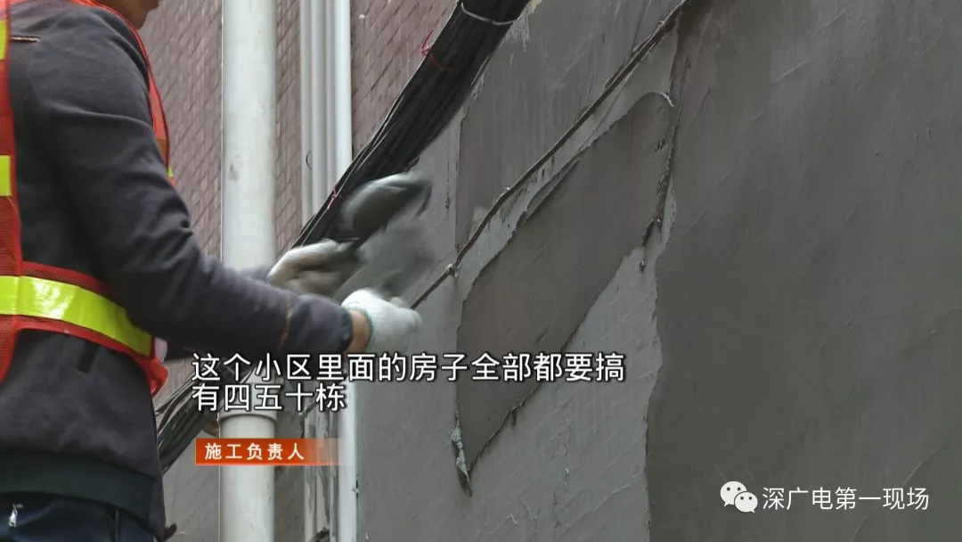 現(xiàn)場的一位施工項目負責人向記者介紹,他們的施工人員只能按上面的施工方案粉刷外墻。這位施工項目負責人說,整個福樓村里的城中村環(huán)境整治,都是由他們來施工,估計要到今年年底前才能完工。