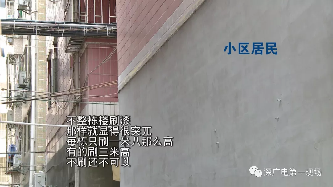 一些居民們投訴說,外墻粉刷只刷三米高,覺得很難看,如果要美化外墻,就應該對整棟樓從上到下全部美化。