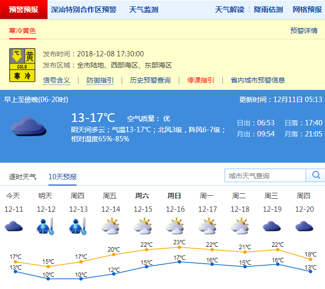 市氣象局發(fā)布未來十天天氣預(yù)報(數(shù)據(jù)更新于12月11日5時13分)