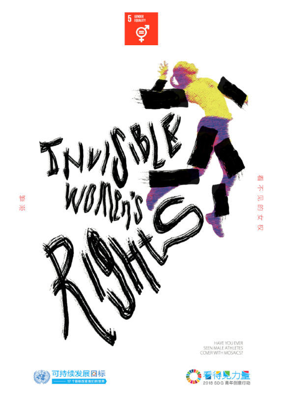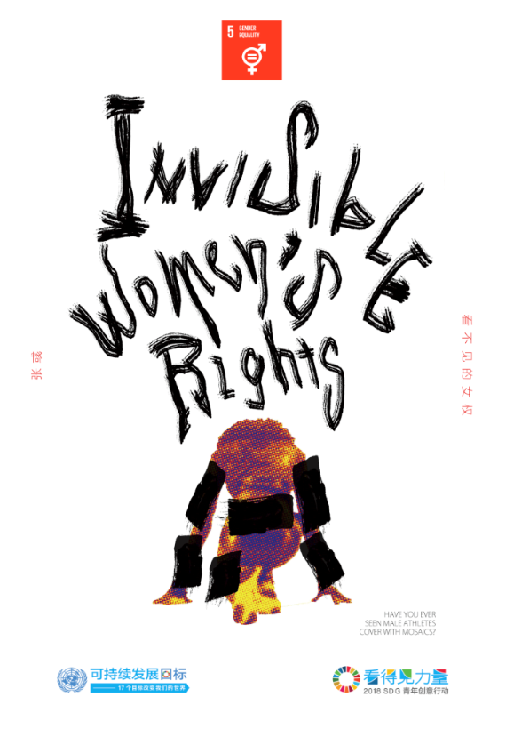 作品解釋 /在一些國家的電視體育轉播中,女性的肢體是不能裸露于外界視線之中的??尚Φ氖?,原本展現(xiàn)身姿動作的體育賽事,卻被黑色馬賽克所遮擋,顯得畫面十分尷尬。這就是女性在當下的權利阻礙,試問,男性在體育賽事中也有相同待遇嗎?