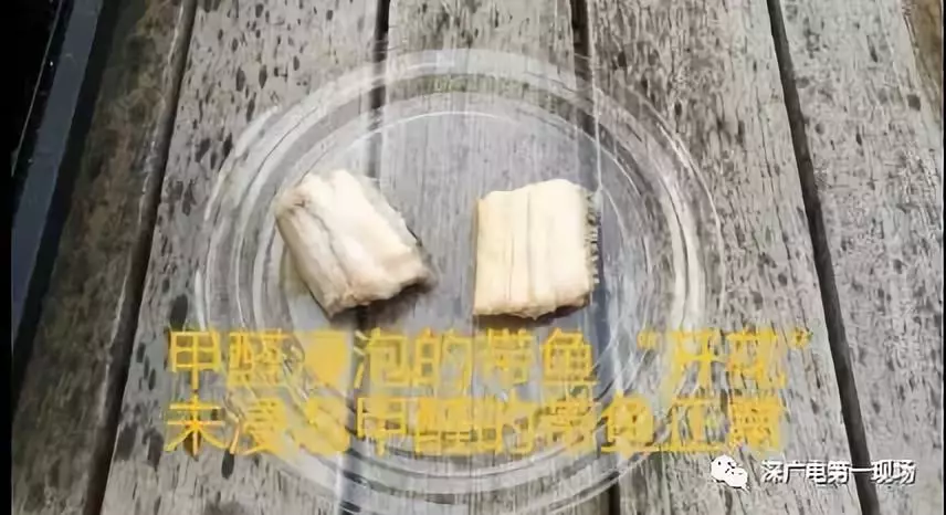 第二步,在其中一份帶魚中,倒入少量福爾馬林,并浸泡5分鐘左右;