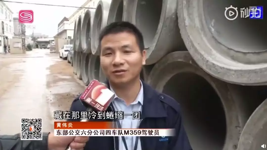 12月22日晚上十點(diǎn)多,東部公交六分公司四車隊(duì)的公交司機(jī)黃師傅剛剛下班,回家路上經(jīng)過(guò)坪山區(qū)金牌路時(shí),聽(tīng)到擺放在路邊的排污下水管道有聲音便上前查看。