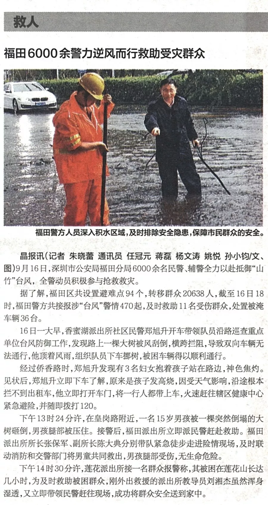 ★★福田警方啟動一級勤務(wù),全力投入防御超強(qiáng)臺風(fēng)“山竹”行動中。福田警方共接報涉“臺風(fēng)”警情470起,及時救助11名受傷群眾,轉(zhuǎn)移群眾20638人,處置被淹車輛36臺,確保了轄區(qū)治安穩(wěn)定。