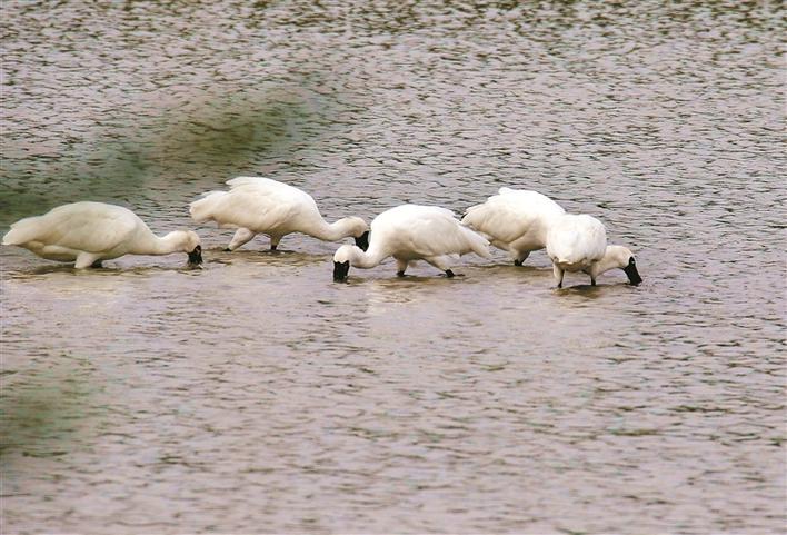 原標(biāo)題:2018年最后一天近60只黑臉琵鷺結(jié)伴亮相