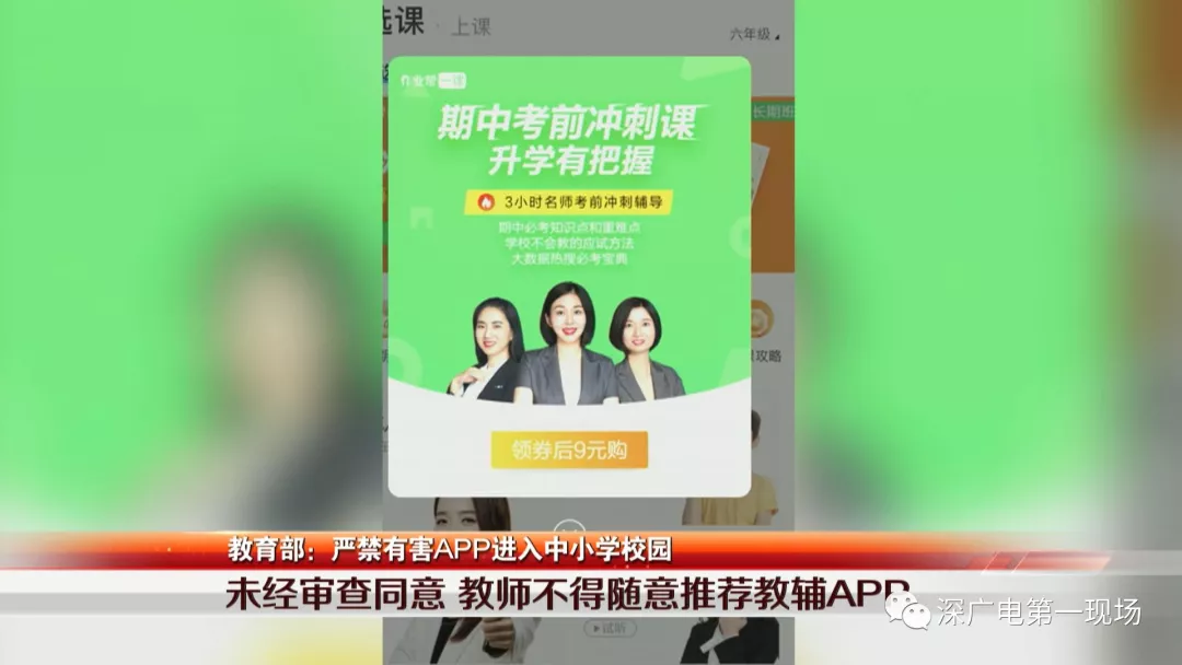 教育部發(fā)布的通知指出:凡發(fā)現(xiàn)包含色情暴力、網(wǎng)絡(luò)游戲、商業(yè)廣告等內(nèi)容及鏈接,或利用抄作業(yè)、搞題海、公布成績排名等應(yīng)試教育手段,增加學(xué)生課業(yè)負擔(dān)的APP,要立即停用,退訂相關(guān)業(yè)務(wù),卸載APP,取消關(guān)注有關(guān)微信公眾號,堅決杜絕有害APP侵蝕校園。