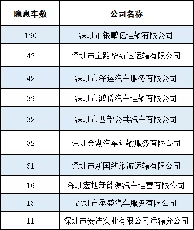 我市公路及旅游客運大客車隱患最多的前十個公司
