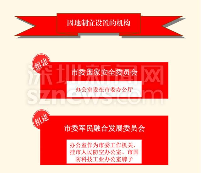 一是突出完善堅(jiān)持和加強(qiáng)黨的全面領(lǐng)導(dǎo)的體制機(jī)制。這次改革,將完善堅(jiān)持黨的全面領(lǐng)導(dǎo)的制度作為首要任務(wù),健全黨委對(duì)重大工作的領(lǐng)導(dǎo)體制機(jī)制,強(qiáng)化黨的組織在同級(jí)組織中的領(lǐng)導(dǎo)地位,加強(qiáng)黨委職能部門(mén)對(duì)本系統(tǒng)本領(lǐng)域工作統(tǒng)籌,著力從制度安排上發(fā)揮黨的領(lǐng)導(dǎo)這個(gè)最大的體制優(yōu)勢(shì),形成黨總攬全局、協(xié)調(diào)各方的工作格局,確保黨始終成為經(jīng)濟(jì)特區(qū)事業(yè)的堅(jiān)強(qiáng)領(lǐng)導(dǎo)核心。如:組建或優(yōu)化調(diào)整相關(guān)議事協(xié)調(diào)機(jī)構(gòu),加強(qiáng)和優(yōu)化市委對(duì)全面深化改革、全面依法治市、國(guó)家安全、網(wǎng)絡(luò)安全和信息化、軍民融合發(fā)展、推進(jìn)粵港澳大灣區(qū)建設(shè)以及審計(jì)、教育等工作的領(lǐng)導(dǎo),確保市委決策部署令行禁止、工作高效,確保黨的領(lǐng)導(dǎo)更加堅(jiān)強(qiáng)有力;更好發(fā)揮黨委職能部門(mén)的統(tǒng)一歸口協(xié)調(diào)管理職能,按照突出核心職能、整合相近職能、充實(shí)協(xié)調(diào)職能的原則,調(diào)整黨政機(jī)關(guān)機(jī)構(gòu)設(shè)置和職能配置,加強(qiáng)黨對(duì)機(jī)構(gòu)編制資源、公務(wù)員隊(duì)伍、宣傳陣地等的領(lǐng)導(dǎo)和管理;統(tǒng)籌黨政機(jī)構(gòu)設(shè)置,整合優(yōu)化力量和資源,發(fā)揮綜合效益,實(shí)現(xiàn)增強(qiáng)黨的領(lǐng)導(dǎo)力和增強(qiáng)政府執(zhí)行力的有機(jī)統(tǒng)一。