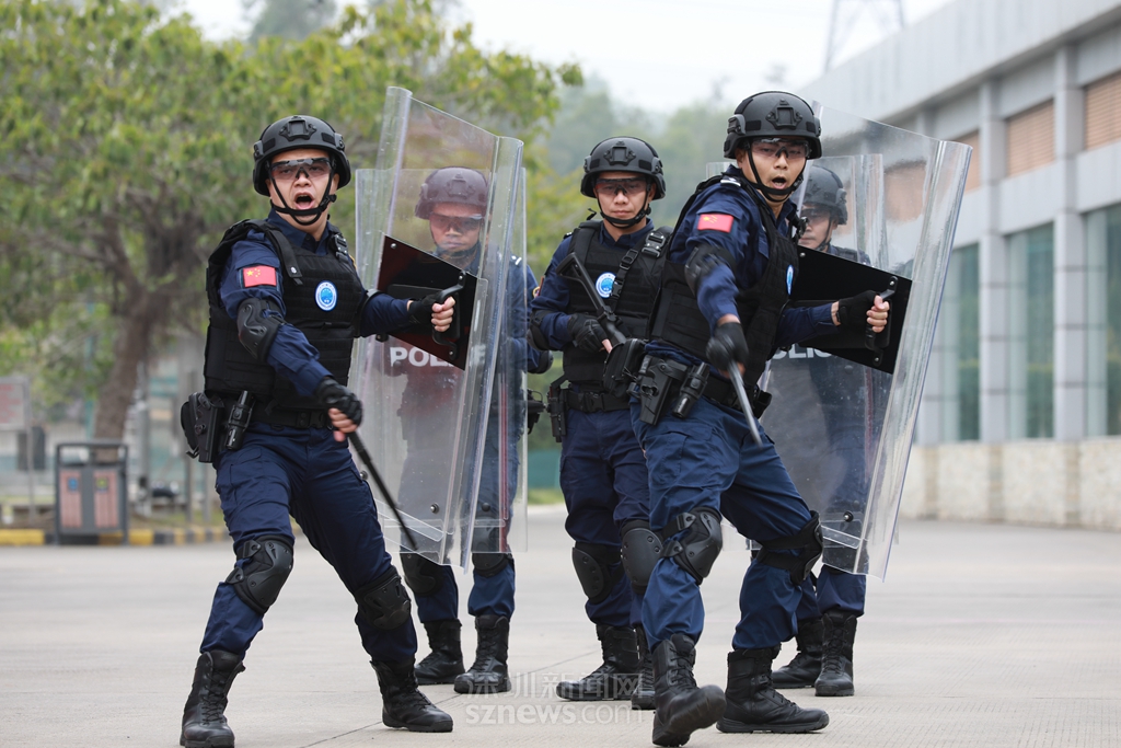 隊列會操步履整齊劃一,動作規(guī)范有力,擒敵拳演練虎虎生威,遒勁剛猛,展現(xiàn)了深圳監(jiān)獄警察訓(xùn)練有素、團結(jié)一致的團隊風(fēng)采。特警隊員壓軸表演的警棍盾牌操,動作迅速,合作默契,彰顯深圳監(jiān)獄警察過硬的專業(yè)本領(lǐng)和團結(jié)協(xié)作的團隊精神。值得一提的是,在9個隊列中,有1個隊列全部由女警組成,她們聲音洪亮,英姿颯爽,巾幗不讓須眉,是深圳監(jiān)獄警察團隊中一道亮麗的風(fēng)景。