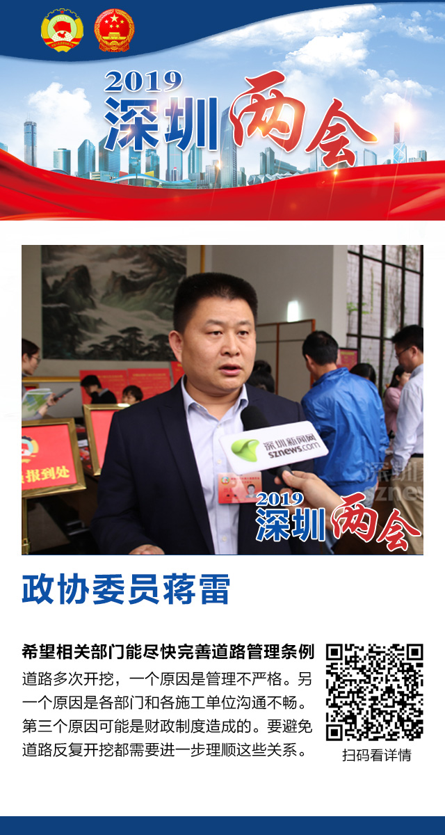 深圳新聞網(wǎng)2019年1月17日訊 深圳市政協(xié)六屆五次會(huì)議1月16日開(kāi)幕,記者就全市范圍內(nèi)出現(xiàn)的道路反復(fù)開(kāi)挖向政協(xié)委員們征求解決良方,委員們表示,在(道路反復(fù)開(kāi)挖)這件事情上,我們每個(gè)人都是受害者。只有各部門一盤棋,讓規(guī)劃更有前瞻性,讓城市建設(shè)慢下來(lái),才能解決問(wèn)題,減少給市民生活帶來(lái)的各種不便。下面讓我們一起來(lái)看看委員們的觀點(diǎn)。