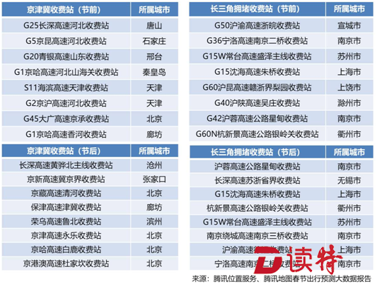 眾所周知,收費(fèi)站是節(jié)假日最易發(fā)生堵車(chē)的地點(diǎn)。根據(jù)《報(bào)告》,春節(jié)期間在京津冀地區(qū),擁堵收費(fèi)站絕大部分為省界收費(fèi)站,出現(xiàn)在天津-河北、河北-山東、河北-山西、河北-遼寧、北京-河北邊界區(qū)域。從時(shí)間來(lái)看,節(jié)前預(yù)計(jì)上午10-12點(diǎn)將出現(xiàn)較大擁堵距離,節(jié)后則為16-18點(diǎn)。