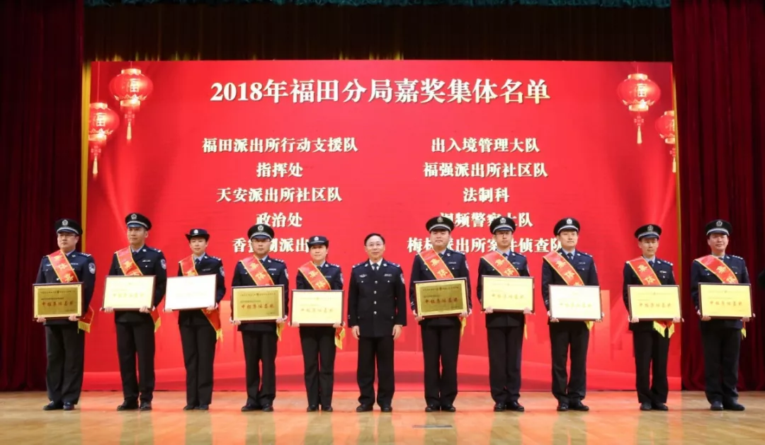 1月24日,福田公安分局舉行2018年總結(jié)表彰大會,會議對2018年度15個先進(jìn)集體、54名民警及14名優(yōu)秀警嫂進(jìn)行了表彰。