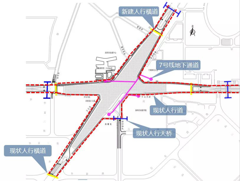 車行交通調(diào)整為:皇崗路 -紅荔路 -華富路 -華新路;上步路 -紅荔路 -華強北路 -華新路或上步路 -筍崗西路 -百花四路 -華新路。