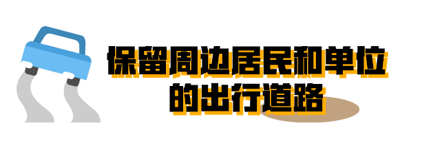 雖然周邊主干道全部被封閉了,但是考慮到附近居民和單位的出行問題,周邊仍保留了部分輔道并設置疏解路。