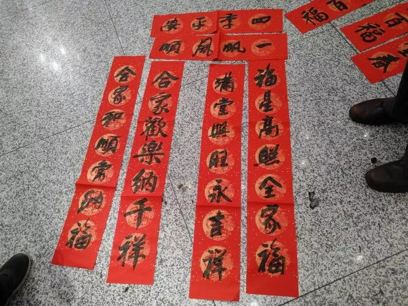 宋先生當天10:50的飛機出發(fā)去上海再轉機回老家山東,他選擇了“人和家順百事興,富貴平安福滿堂”橫批“家和業(yè)興”,一個個“家”“安”“和”等字樣表達了他的新年愿望:希望家人平平安安。