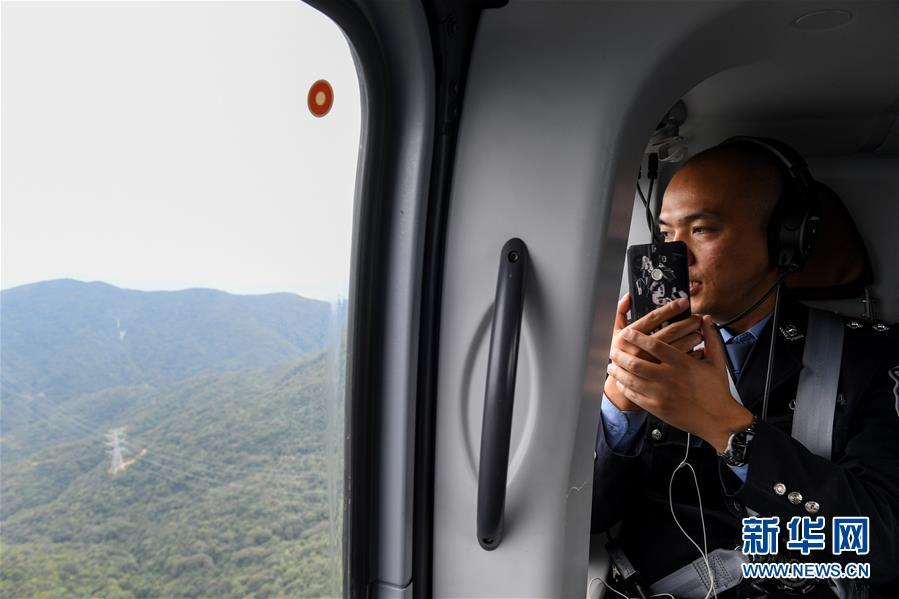2月1日,深圳市公安局交通警察局指揮處民警劉松超在直升機上了解路面情況。2019年春運,深圳市公安局交通警察局開啟陸空立體探路模式,首次啟用直升機探路。據(jù)介紹,此次直升機探路將開展5次,屆時交警選取代表性線路從空中探察路面情況,及時為司機提供立體交通通行指引。新華社記者 毛思倩 攝