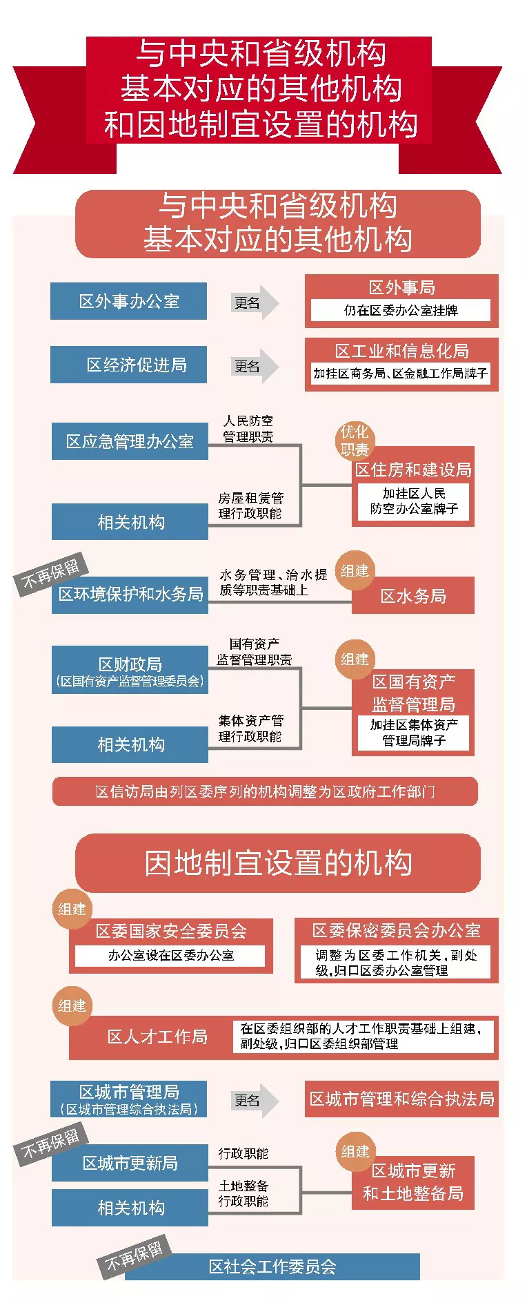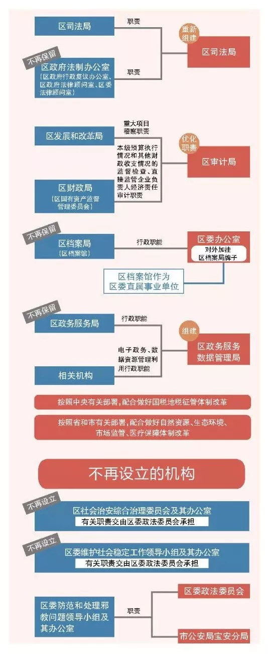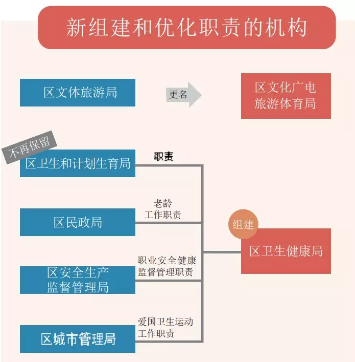 據(jù)了解,根據(jù)工作安排,區(qū)級機構(gòu)改革于3月底前基本完成。