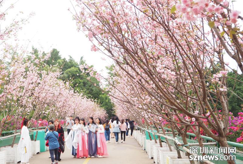 今年是觀瀾湖生態(tài)體育園連續(xù)第三屆舉辦櫻花節(jié),1000多株盛開的櫻花與游客見面,有粉紅的貂蟬櫻、桃紅的貴妃櫻、單瓣白色的小喬櫻,上千株櫻花打造出年味十足的櫻花大道、櫻花海洋等浪漫拍照主題景點。此外還新增了上萬株魯冰花做搭配,放眼看去一片姹紫嫣紅。此次櫻花節(jié)將持續(xù)至3月10日。