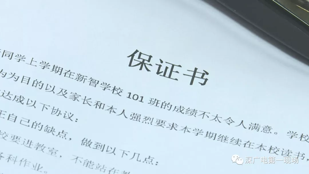 德育處主任說,新智學(xué)校從來沒有因?yàn)閷W(xué)生表現(xiàn)不好,就開除學(xué)生。雖然有家長(zhǎng)簽了《試讀協(xié)議》,承諾學(xué)生只要觸碰“紅線”,試讀就宣告結(jié)束,家長(zhǎng)就必須無條件將孩子帶回家。