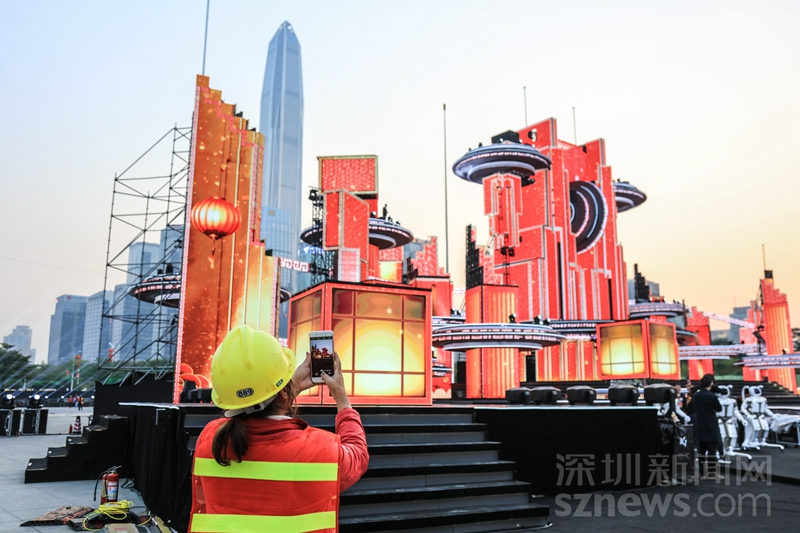 搭舞臺(tái)的工作落在了深圳市住建局的肩上。從接到任務(wù)到1月19日正式彩排錄制,深圳市住建局聯(lián)合深圳市建筑設(shè)計(jì)研究總院有限公司以及中建鋼構(gòu)有限公司深圳分公司配合,用18天完美呈現(xiàn)了什么是新時(shí)代的“深圳速度”和“深圳質(zhì)量”。