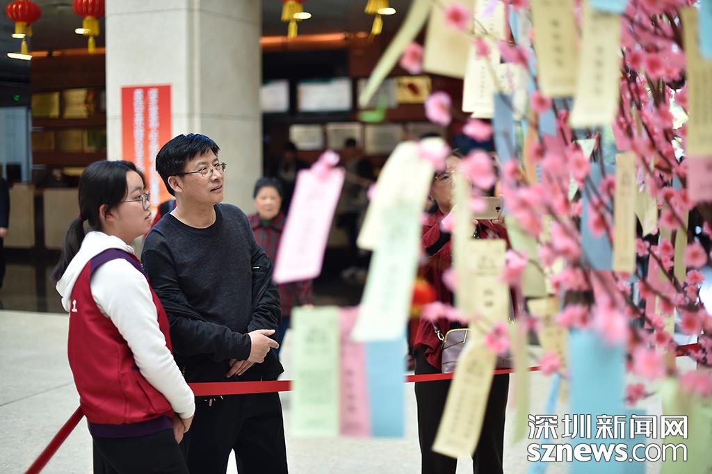 現(xiàn)場(chǎng)的燈謎樹吸引不少市民駐足觀看猜燈謎