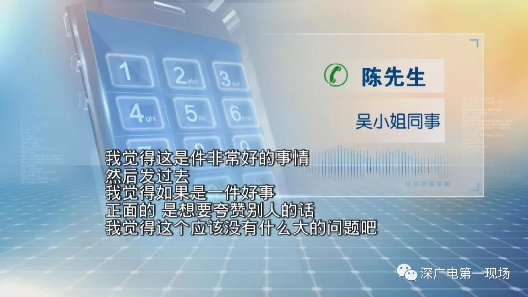 深廣電第一現(xiàn)場2019年2月19日訊 今年20多歲的吳小姐是深圳一家公司的員工。昨天晚上,吳小姐打開了公司的微信工作群,發(fā)現(xiàn)她的同事陳先生在工作群,發(fā)布了吳小姐之前參加選美比賽的相關宣傳報道,和領獎時候的照片,這讓吳小姐一下子驚呆了。