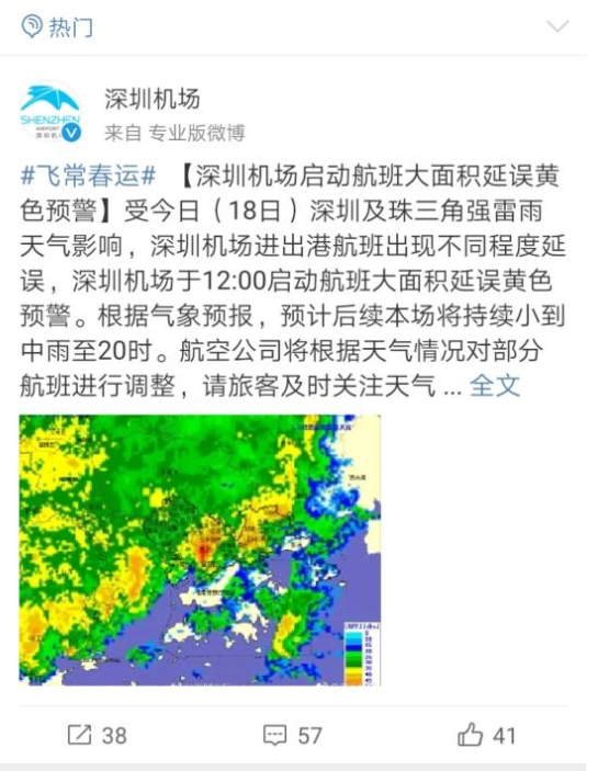 老天爺這周下起了2019年的首場暴雨!深圳機場今年首次航班大面積延誤