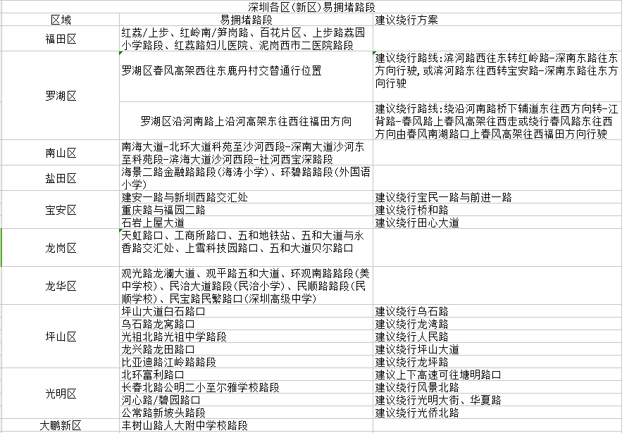 在這之前,先來看看交警盤點的深圳各區(qū)(新區(qū))易擁堵路段