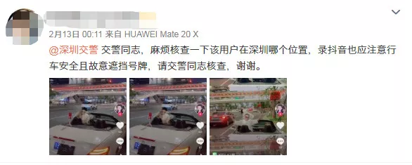 2月13日凌晨,深圳交警接到一名網(wǎng)友舉報(bào),稱有人在路邊拍視頻還遮擋號(hào)牌。