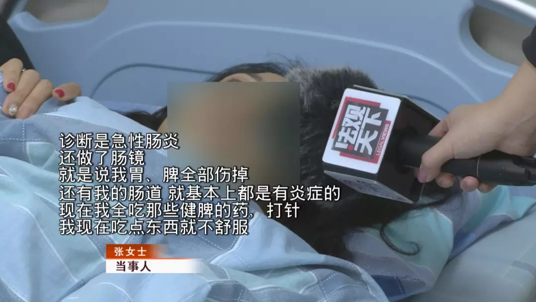 可是繼續(xù)服用酵素后,張女士發(fā)現(xiàn)身體情況還是不對勁,當她再找楊女士進行反映時,對方竟然把自己拉黑了。無奈之下,張女士找到了廣東天成健康管理有限公司的相關(guān)負責人,對方提供了一些中藥讓張女士服用。吃了幾副藥后,張女士的病情仍然未見好轉(zhuǎn),一月底,張女士住進了醫(yī)院。一檢查,張女士發(fā)現(xiàn)自己一下瘦了二十斤,但是身體狀態(tài)大不如前,如今甚至要服用抗抑郁的藥物才能入睡。