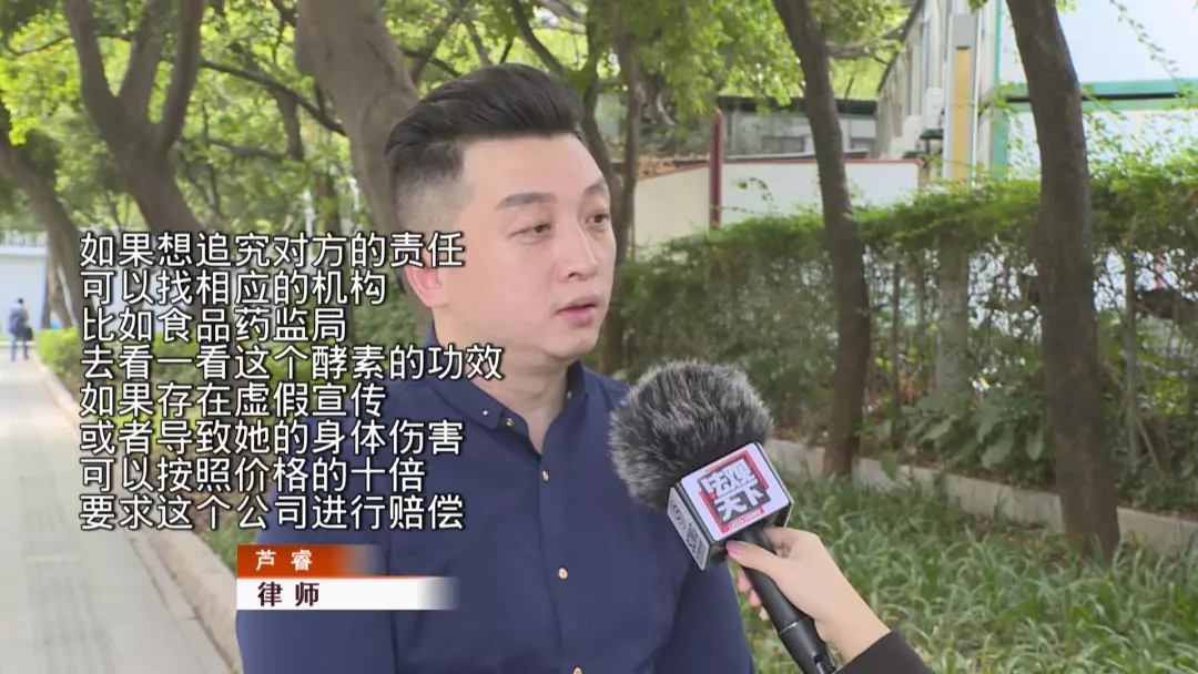 此外律師表示,如果該酵素產(chǎn)品并不存在公司所稱的排毒、養(yǎng)生等功效,則可能涉嫌虛假宣傳。如果確實是由于酵素導致了張女士的身體出現(xiàn)問題,公司方還應當賠償誤工費等其他費用。