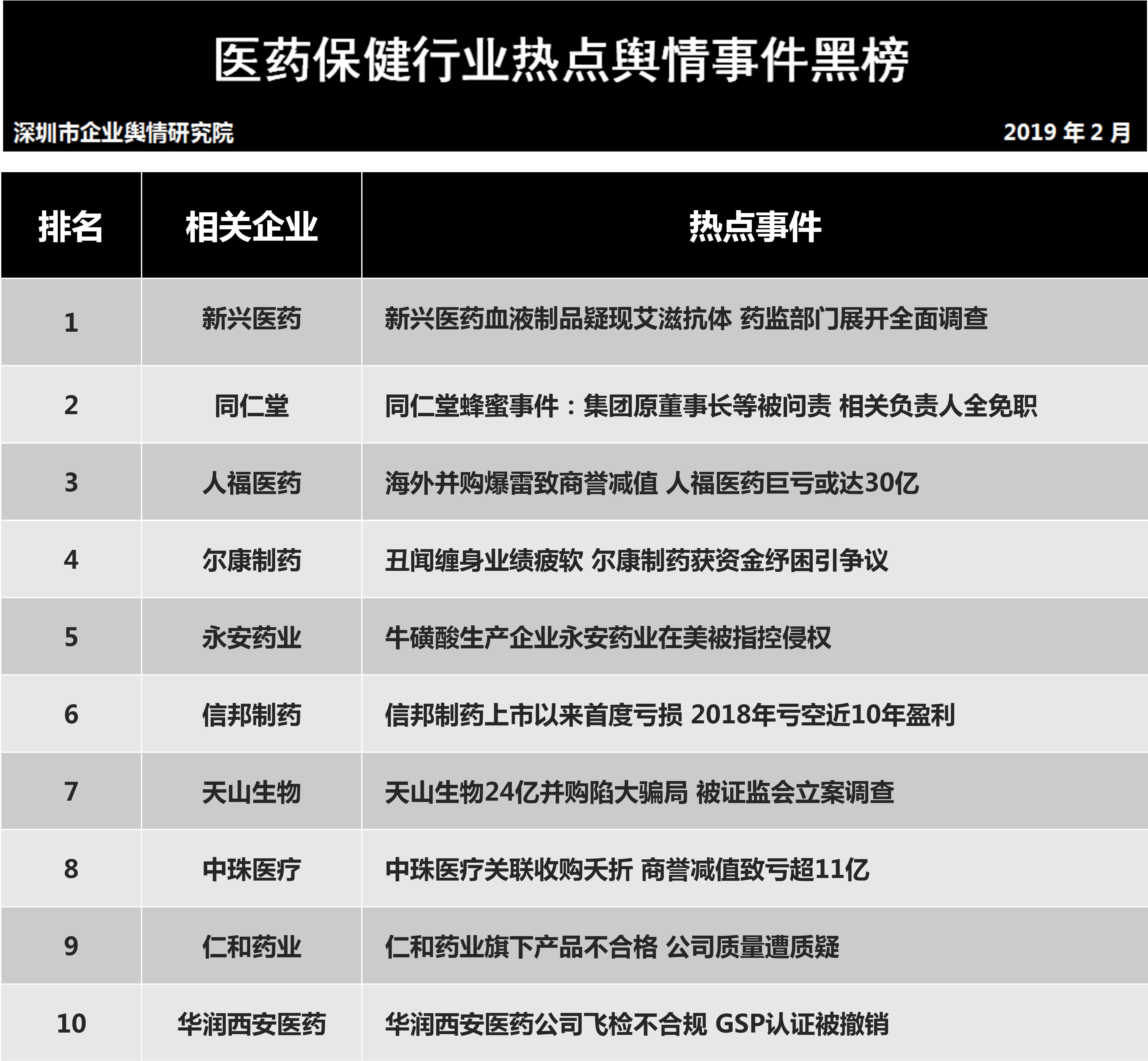 深圳新聞網2019年3月5日訊 (記者田志強 通訊員陳文光)3月5日,深圳企業(yè)輿情研究院發(fā)布第十三批企業(yè)輿情榜單。本次榜單重點聚焦房地產及醫(yī)藥保健兩個行業(yè)。醫(yī)藥保健行業(yè)輿情榜單由醫(yī)療保健行業(yè)熱點輿情事件排行榜(紅、黑榜)及醫(yī)藥保健行業(yè)企業(yè)公眾形象排行榜組成。