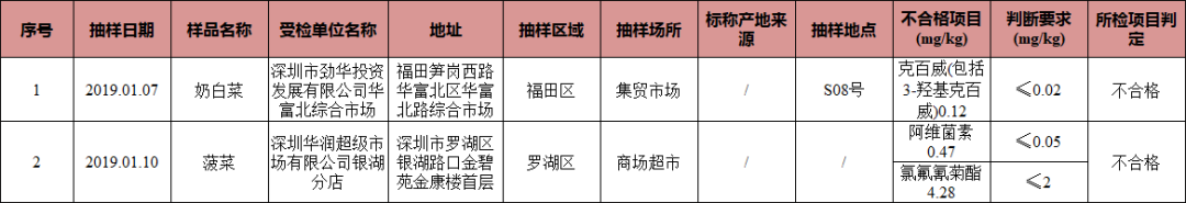 蔬菜有2份抽樣樣品不合格