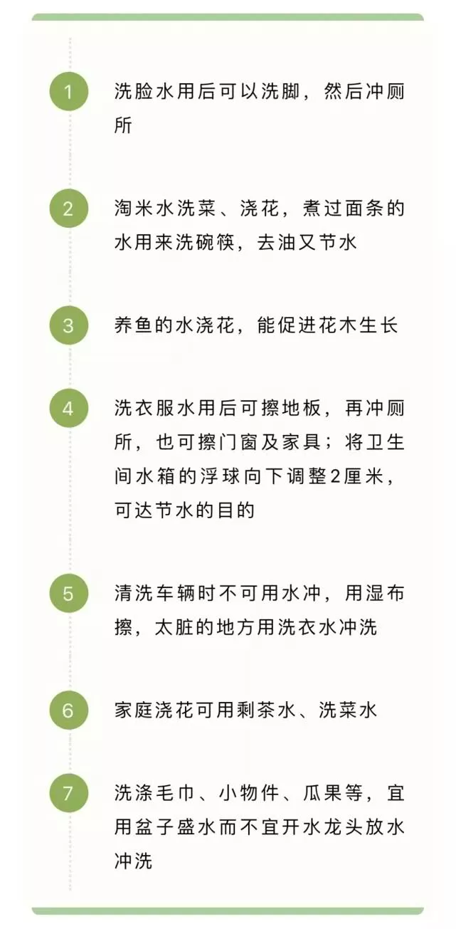 此外,王思達(dá)說(shuō),用噴頭淋浴比用浴缸洗澡節(jié)省水量達(dá)八成之多,建議盆浴后的水可用于洗衣、沖洗廁所和拖地等。