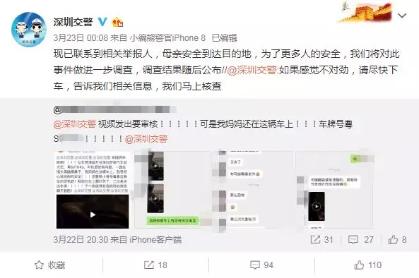 為了確保車內(nèi)乘客安全,深圳交警與舉報(bào)人進(jìn)行聯(lián)系,與此同時(shí)迅速掌握車輛及駕駛?cè)诵畔ⅲ?/span>對車輛駕駛情況展開調(diào)查持續(xù)關(guān)注車輛動(dòng)態(tài)。
