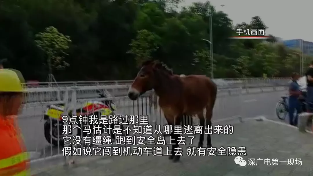 成年騾子路邊站崗是家養(yǎng)的,按照熱心市民留下的大概方位。記者在觀瀾街道庫(kù)坑社區(qū)平安路段終于看到了這個(gè)“稀客”的真容,只不過此時(shí)的它已經(jīng)被套上了韁繩,服服帖帖的站在馬術(shù)教練旁邊。