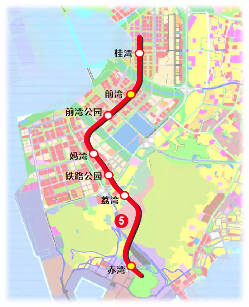 深圳地鐵5號線南延段,即5號線二期工程,北起于5號線前海灣站,經(jīng)前海、南山,終點與地鐵2號線赤灣站換乘。