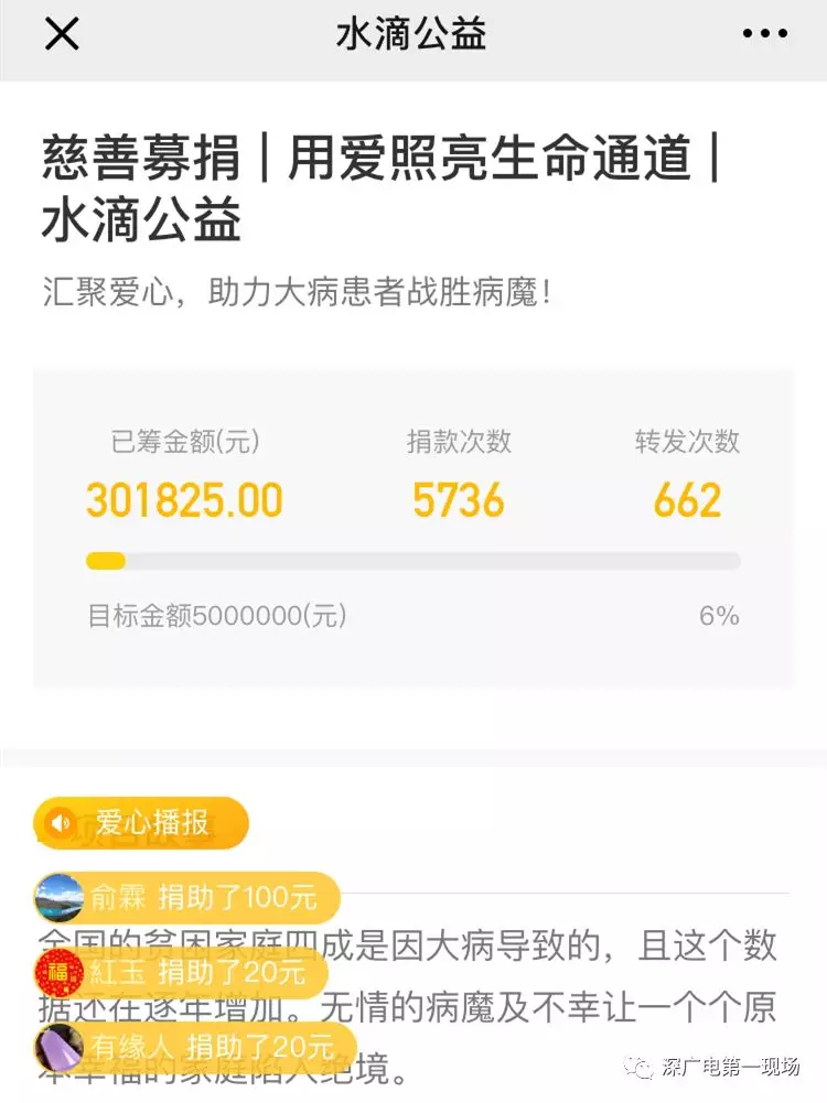 20元、50元、100元,平臺(tái)上善款籌集信息在愛心廣播上滾動(dòng)著。截止4月2日晚上7點(diǎn)半,捐款次數(shù)超過了5736多次,轉(zhuǎn)發(fā)次數(shù)也達(dá)到了6百多,在大家一次次的愛心匯聚下,目前籌款已經(jīng)超過了30萬元。