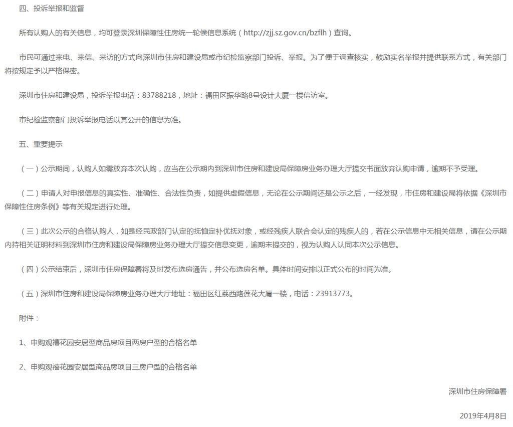 深圳新聞網(wǎng)2019年4月9日訊(記者 劉婷)記者從市住房保障署獲悉,觀禧花園安居型商品房項目認購工作已經(jīng)結束。經(jīng)核查,該項目合格認購家庭共13897戶,合格家庭名單自4月8日至4月12日在深圳政府在線和深圳市住房(http://www.sz.gov.cn)和建設局(http://zjj.sz.gov.cn/)網(wǎng)站公示。
