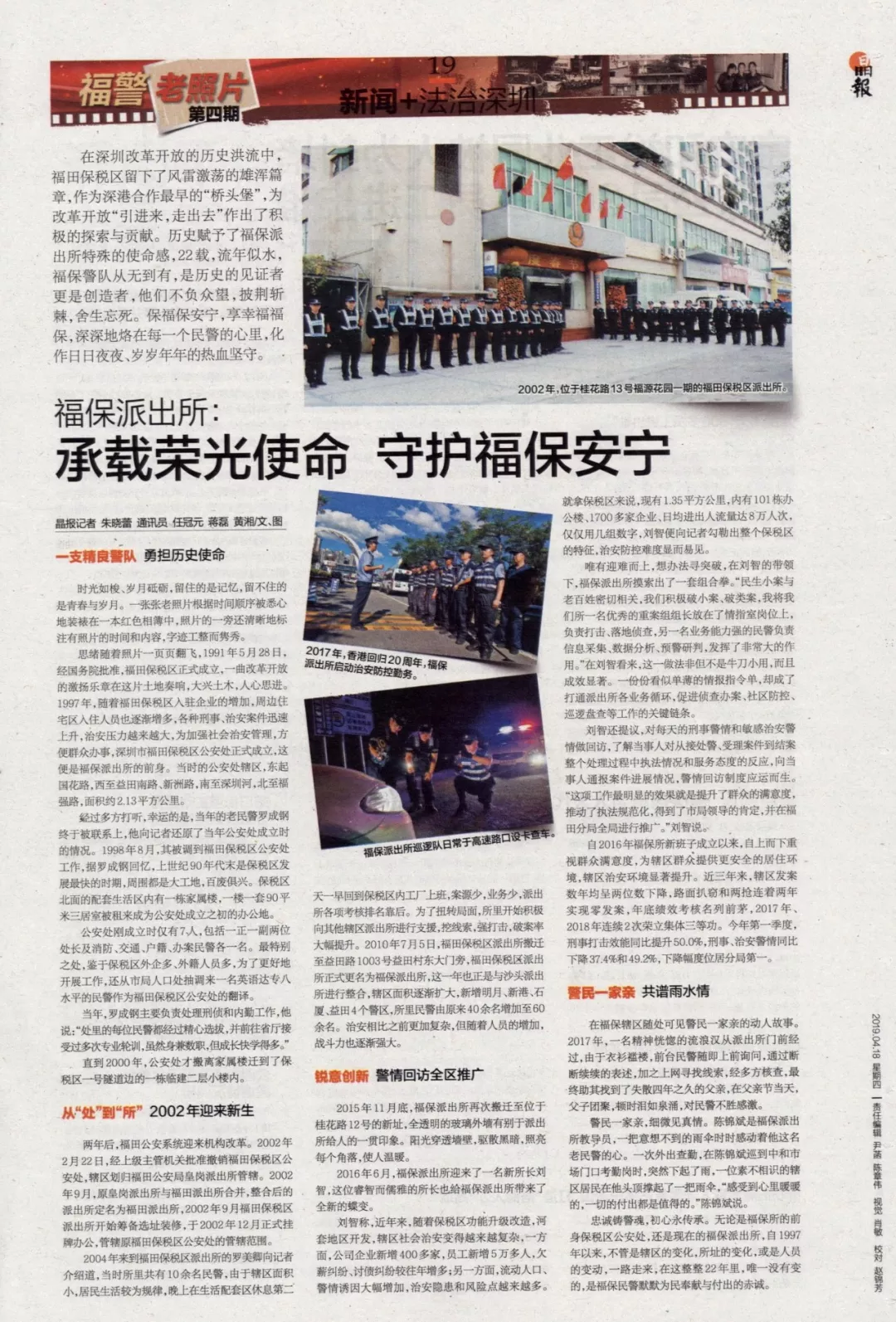 2010年7月5日,福田保稅區(qū)派出所搬遷至益田路1003號(hào)益田村東大門旁,福田保稅區(qū)派出所正式更名為福保派出所,這一年也正是與沙頭派出所進(jìn)行整合,轄區(qū)面積逐漸擴(kuò)大,新增明月、新港、石廈、益田4個(gè)警區(qū),所里民警由原來40余名增加至60余名。治安相比之前更加復(fù)雜,但隨著人員的增加,戰(zhàn)斗力也逐漸強(qiáng)大。
