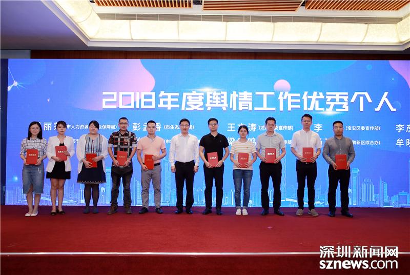 “2018年度深圳市輿情工作優(yōu)秀個人”獲獎?wù)哳I(lǐng)獎合影