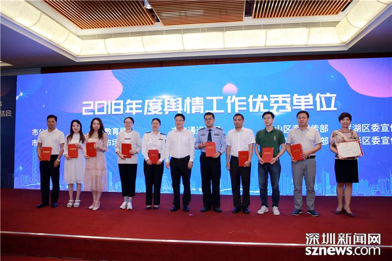 “2018年度深圳市輿情工作優(yōu)秀單位”獲獎代表領(lǐng)獎合影